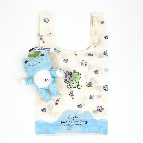 - かえるのピクルス アース&ピクルス ぬいぐるみエコバッグ 海 買い物 マルシェバッグ ブルー