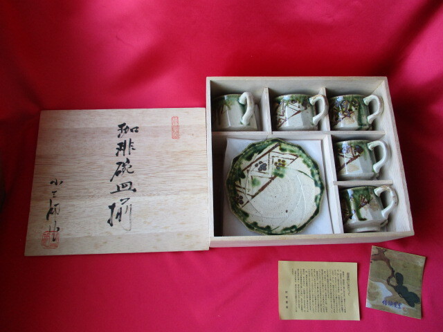 - 美濃焼 織部 珈琲碗皿揃 カップ & ソーサー 5客セット 桔梗屋窯 小三郎 未使用品