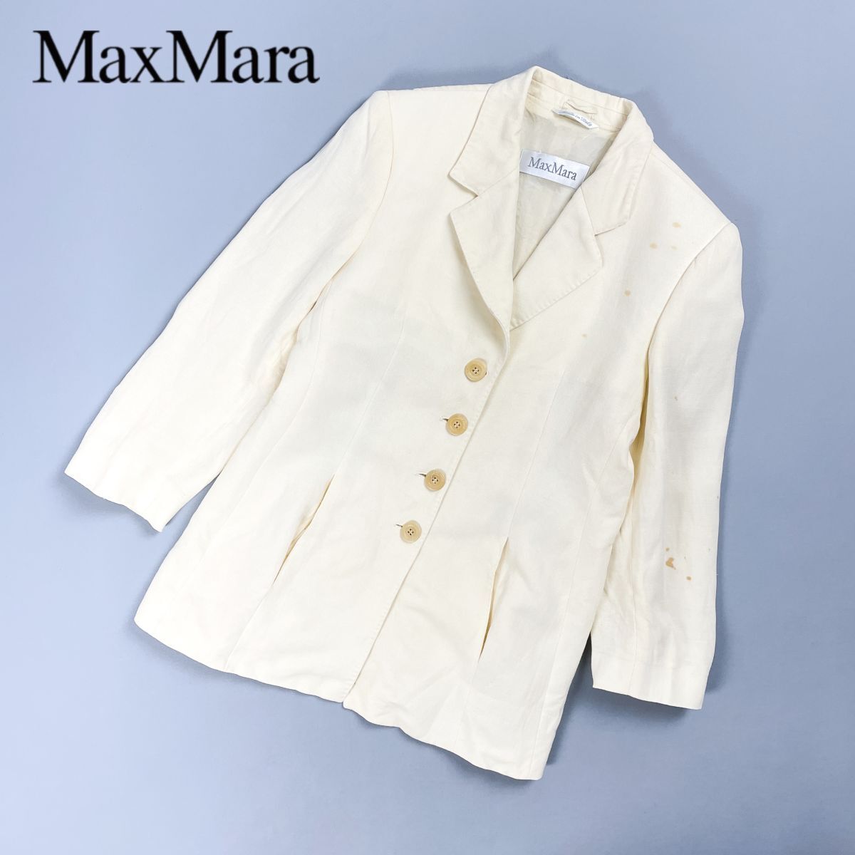 > MaxMara マックスマーラ 白タグ リネン混テーラードジャケット ロング丈 背抜き レディース アイボリー 生成り サイズ38*GD188