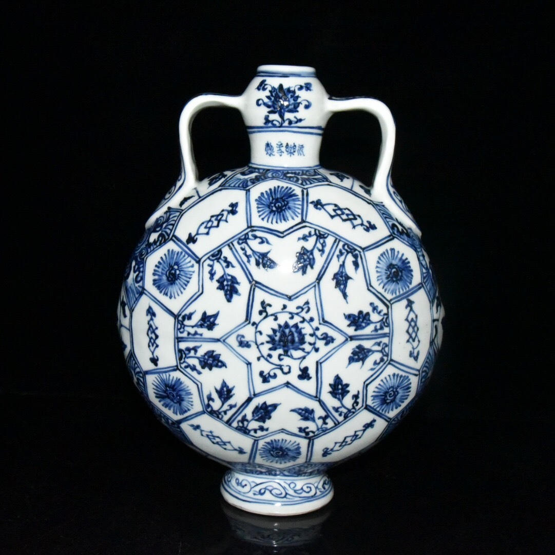 > 蔵友旧蔵出 明 永樂年製款 青花 花卉紋 扁瓶 稀少珍品 貴重品 古陶瓷品 置物 古賞物 中国古玩 中国古美術品