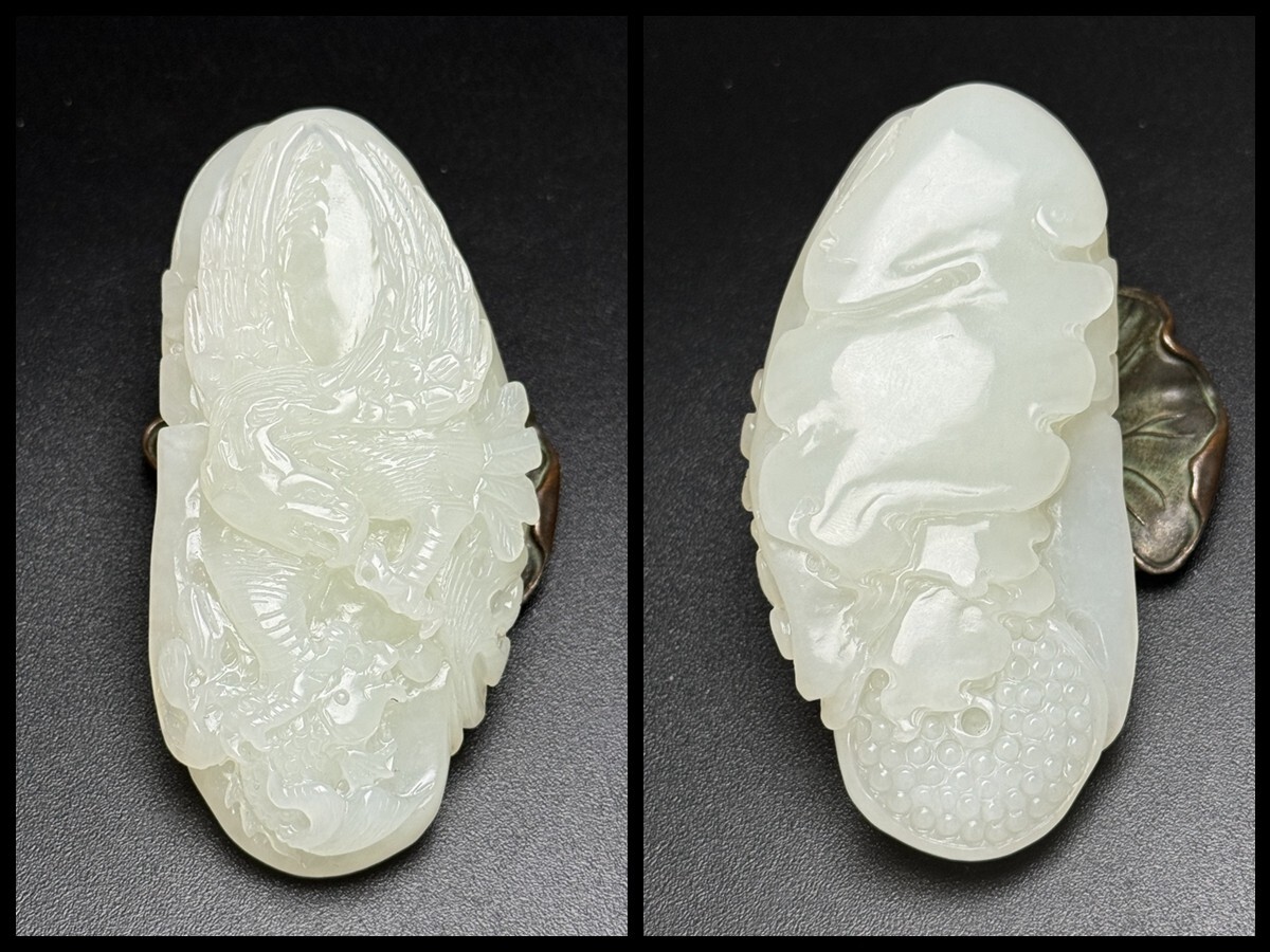 - 「時代物 和田玉 彫り 大展宏図 老鷹 把件」極細工 裝身具 賞物 中国古美術 旧蔵出