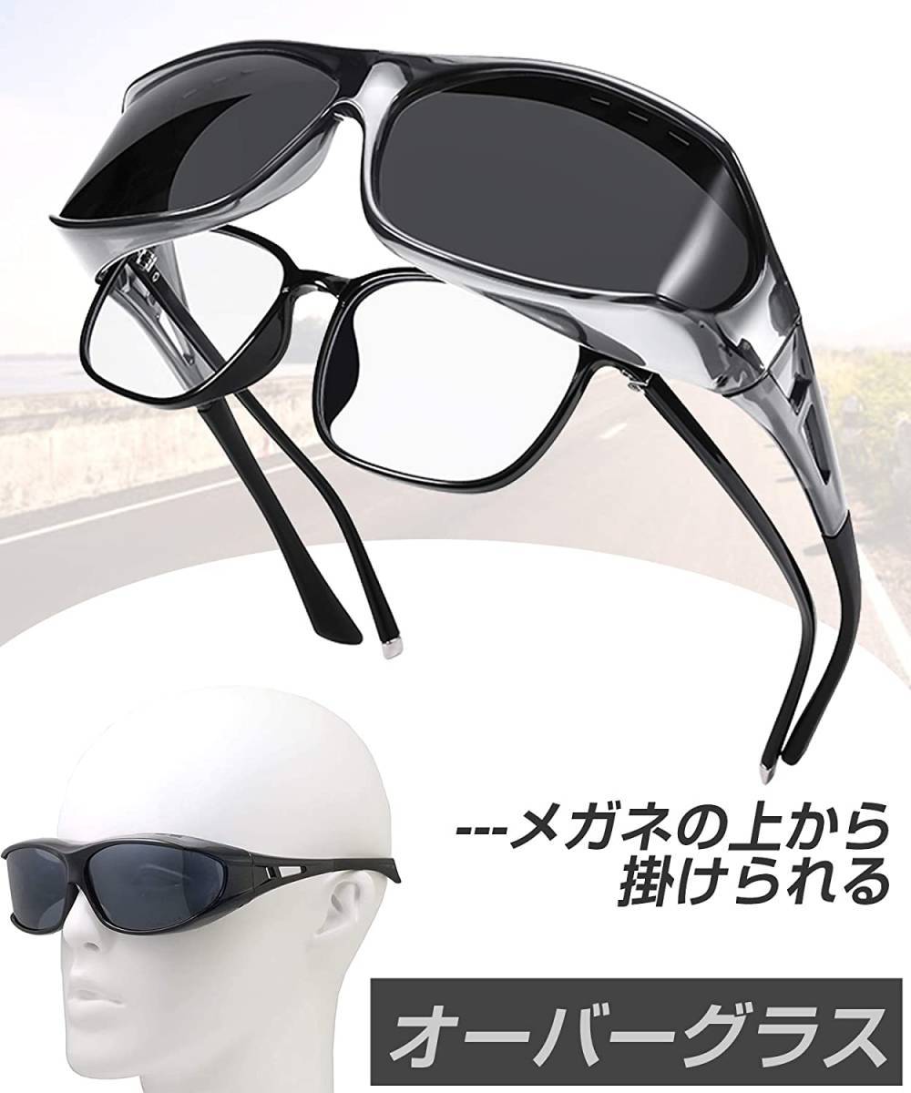 - メガネの上から着用できる 偏光サングラス オーバーサングラス 色(グレー) UVカット 紫外線カット ドライブ/運転 ゴルフ 釣り アウトドア
