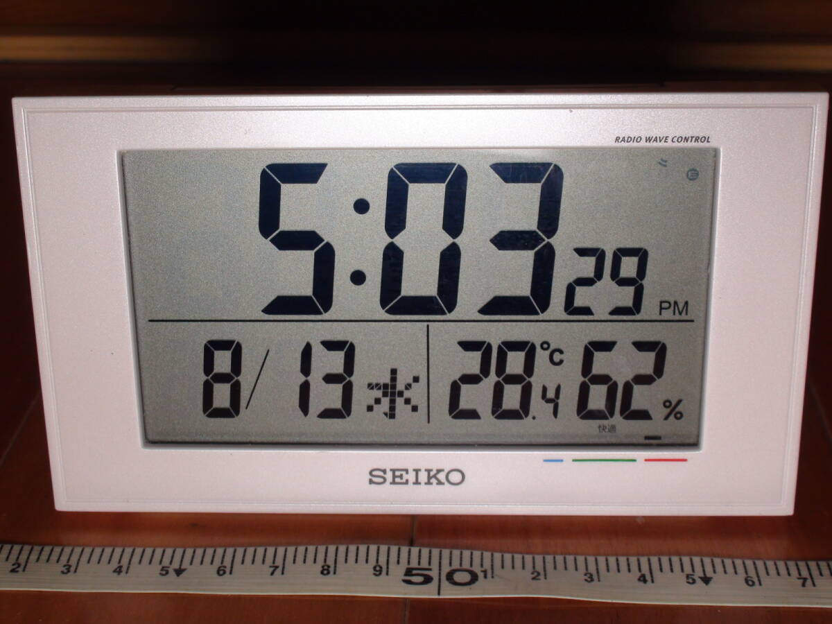 - ★とてもクリアーな表示★SEIKO★電波式デジタル・目覚まし時計★BC402W★日時、曜日、温度、湿度表示★ 電波時計は安心です★電池付き