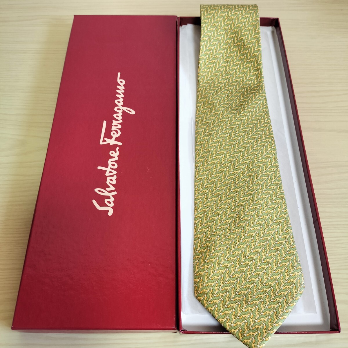 - Salvatore Ferragamo(サルヴァトーレフェラガモ)緑ミニキツネさん模様ネクタイ