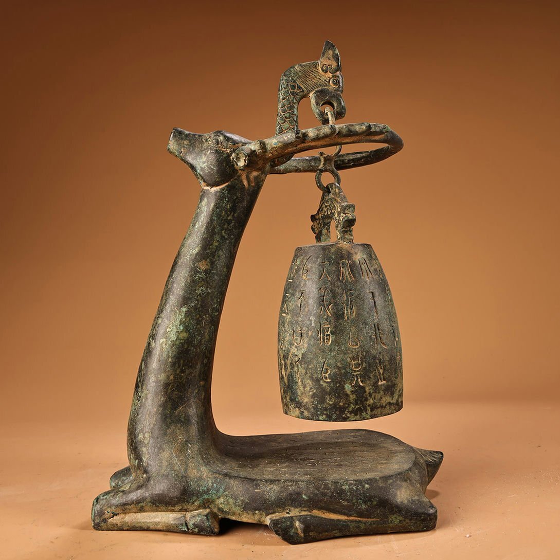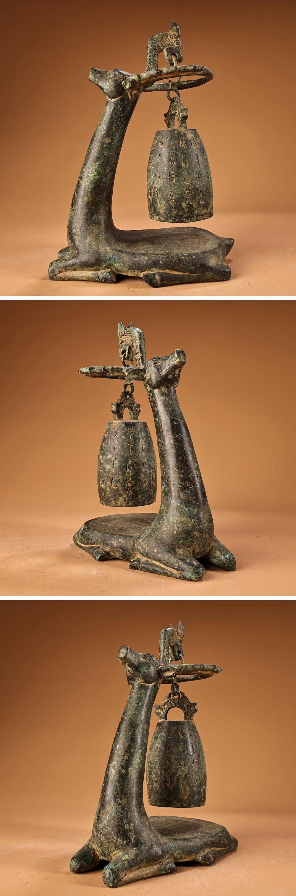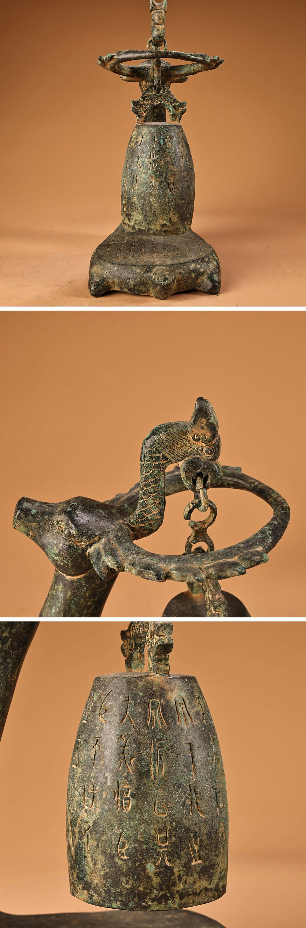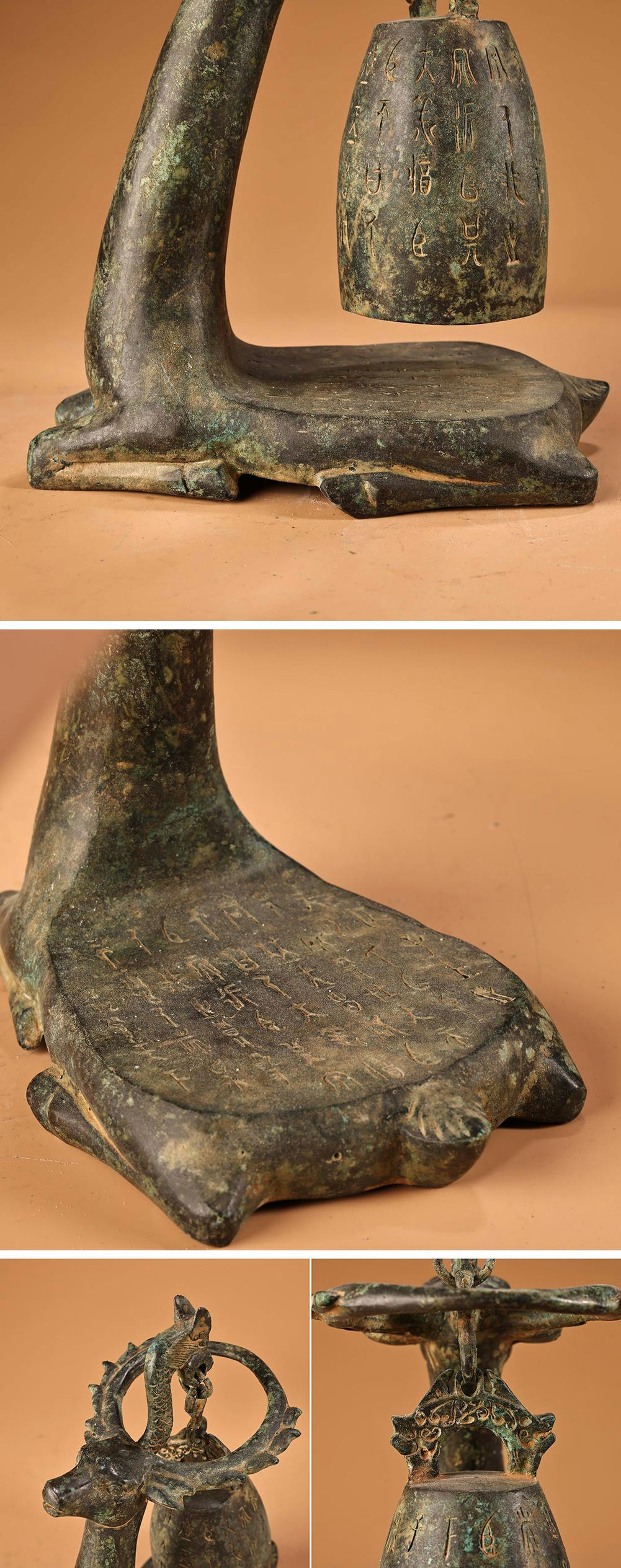 - ◆羽彰・古美術◆Y7977西周時代 青銅器 青銅銘文鹿掛鐘 細密細工★古置物★古賞物★古擺件★蒐集家放出★唐物