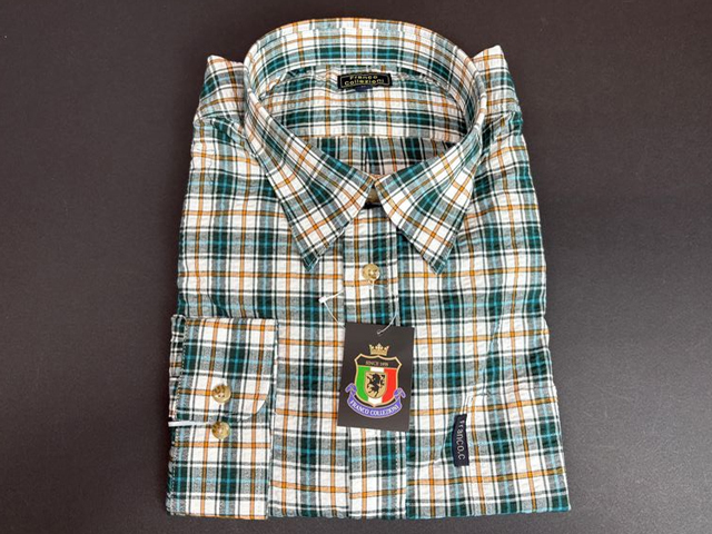 > 41256-1-a42-2 グリーンチェック LLサイズ 3790円 FRANCO COLLEZIONI サッカー織ロールアップシャツ 綿100%