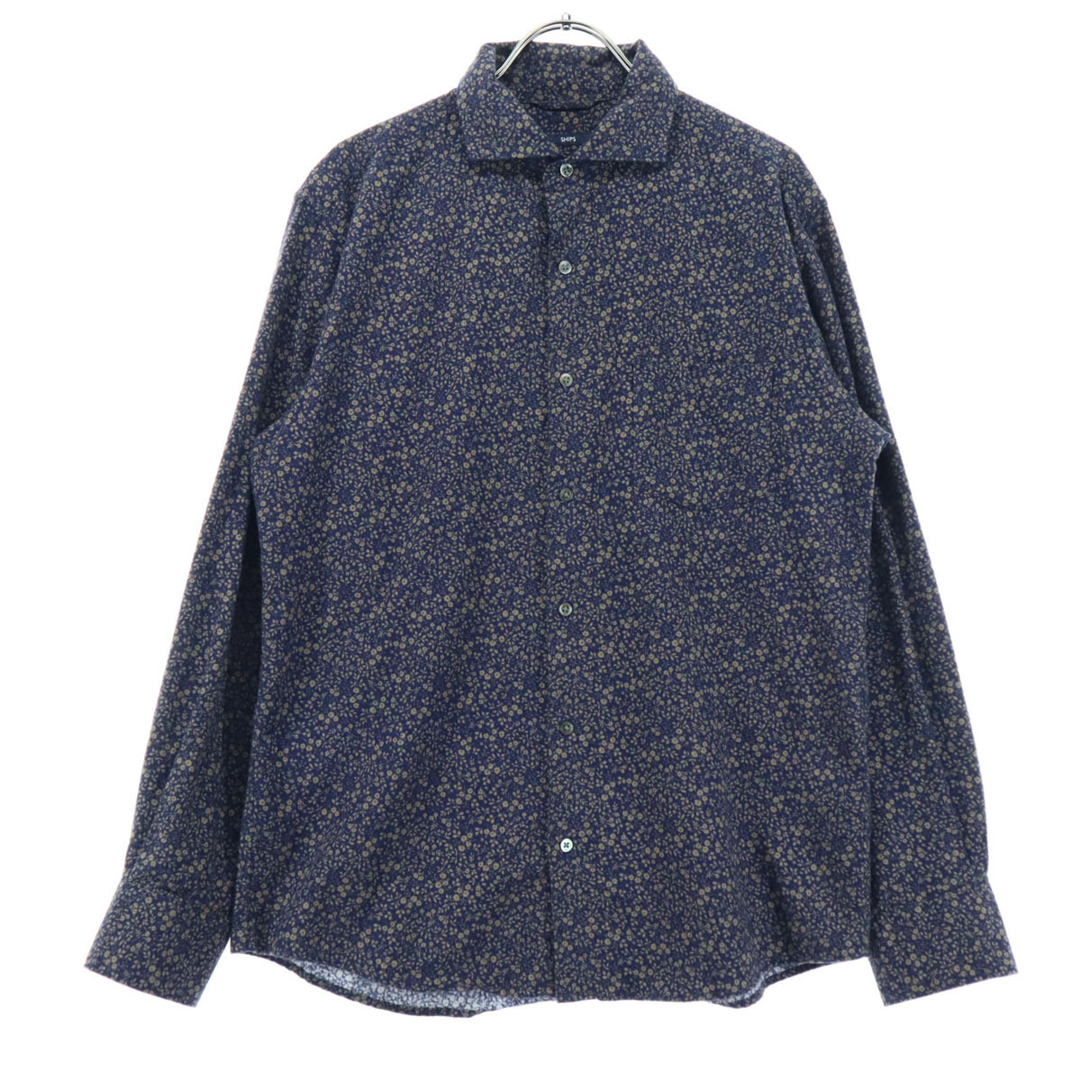 美品 SHIPS シップス 小花柄 長袖 シャツ M ネイビー レディース