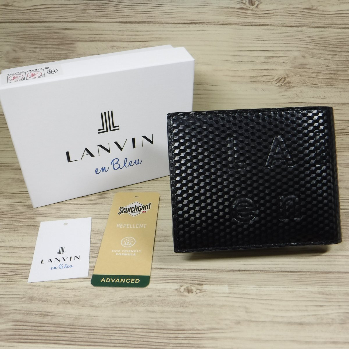 > QQ542 ランバン オンブルー 定価1万7600円 新品 黒 二つ折り財布 撥水レザー 牛革 LANVIN en Bleu ディジョン 546603 3Mスコッチガード加工