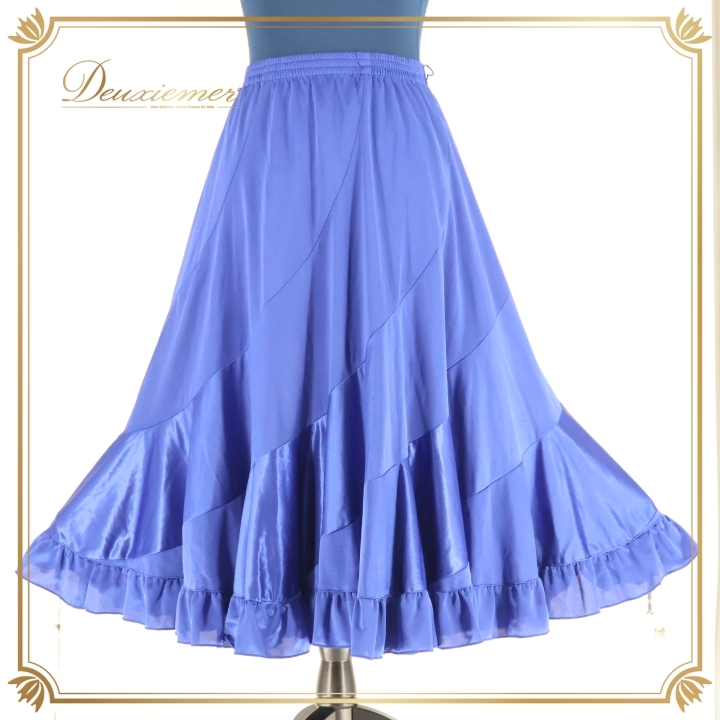 - 社交ダンス 衣装 スタンダード スカート ブルー系 サテン レース レッスン 練習着 青 社交ダンススカート フリル イベント 発表会 舞台