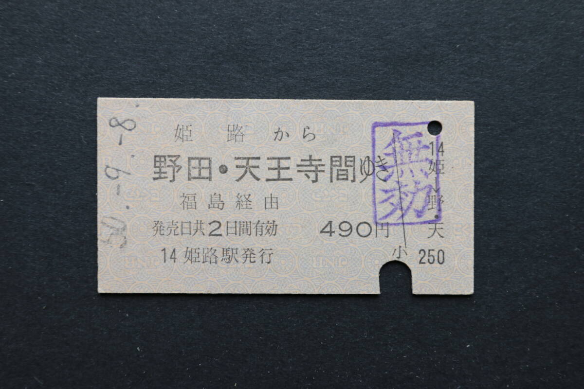 - 乗車券 姫路から 野田・天王寺間ゆき 490円