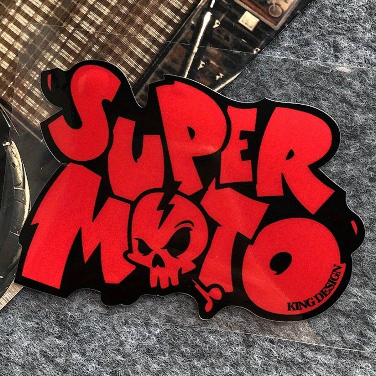 - ステッカー スーパーモト がいこつ レッド 赤 車用 シール 11cm ドクロ SUPER MOTO ビニール 防水 かっこいい バイク オートバイ 2D t7978