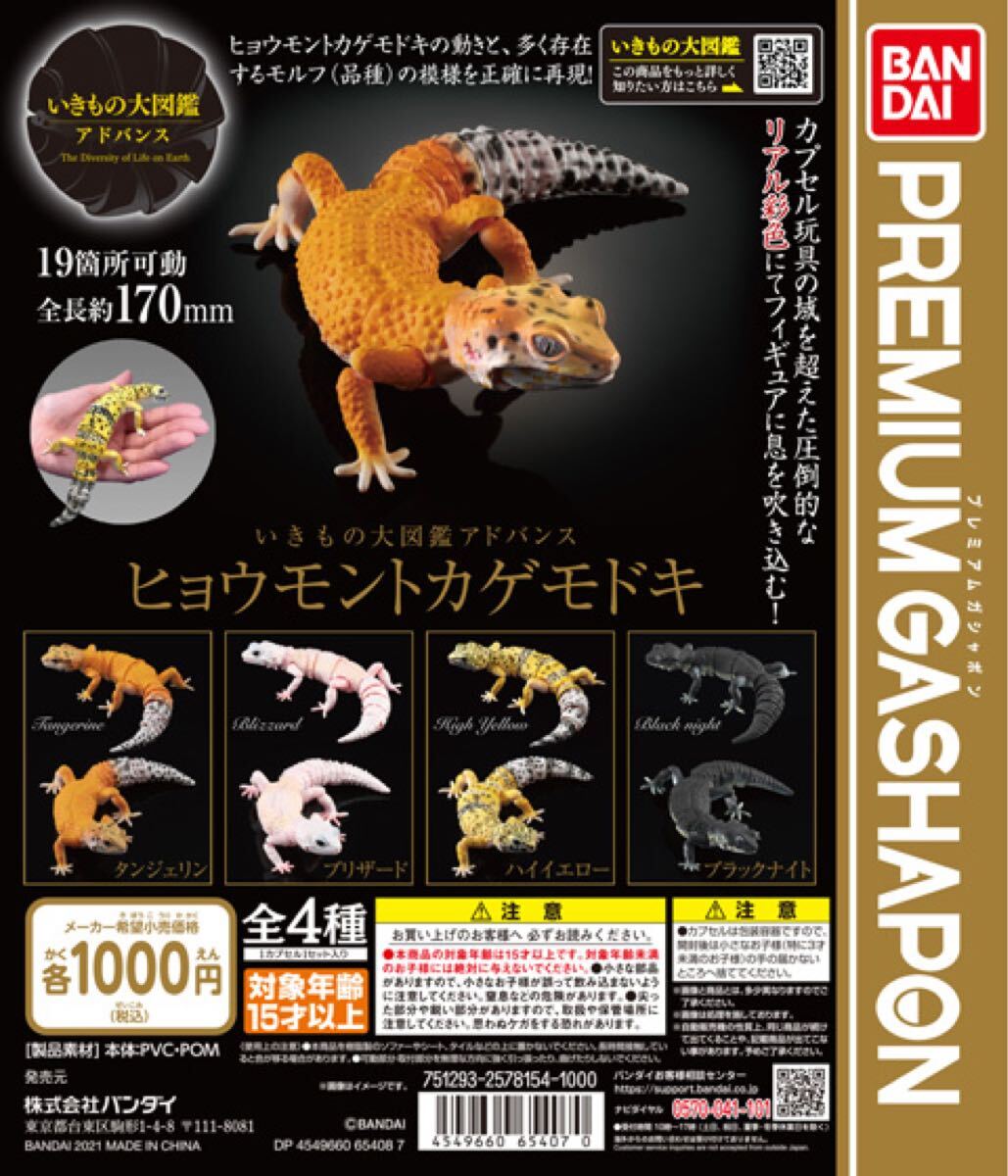 - 【新品未開封】バンダイ いきもの大図鑑アドバンス ヒョウモントカゲモドキ 全4種SET プレミアムガシャポン
