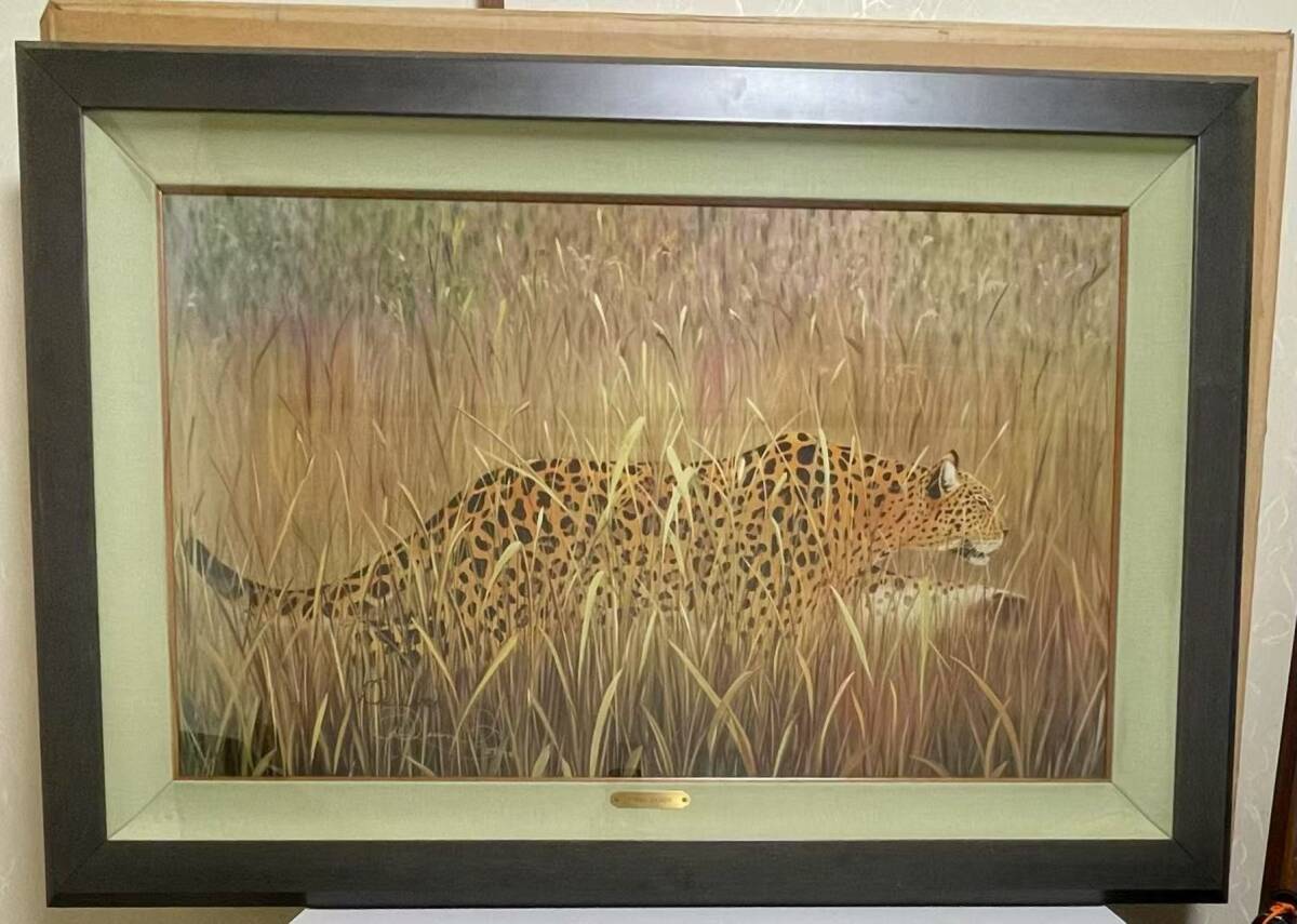 - Dana Queen ダナ・クイーン 大型アート作品【レパードインザグラス】 直筆サイン入 真作保証 リトグラフ 額装 絵画 美術 黄袋 箱付き