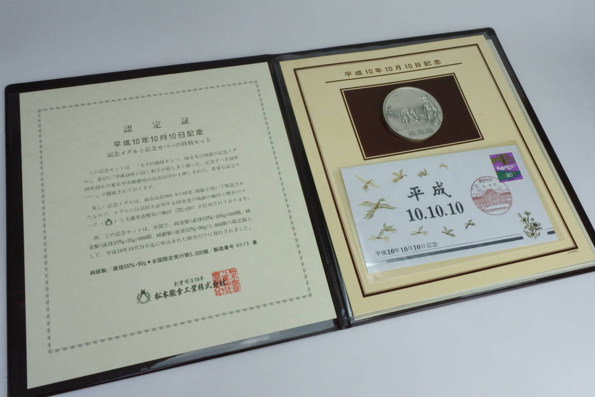 - 限定発行数 5.000個 ☆ 純銀90g製 平成10年10月10日 記念メダルと記念カバー の特別セット ☆ 極珍品