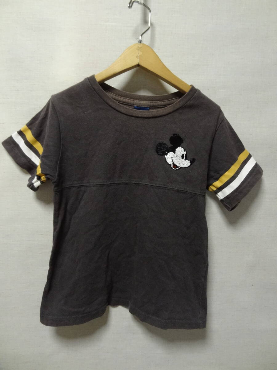 > 全国送料無料 ミッキーマウス 子供服キッズ男&女の子 スパンコールミッキー半袖Tシャツ 140