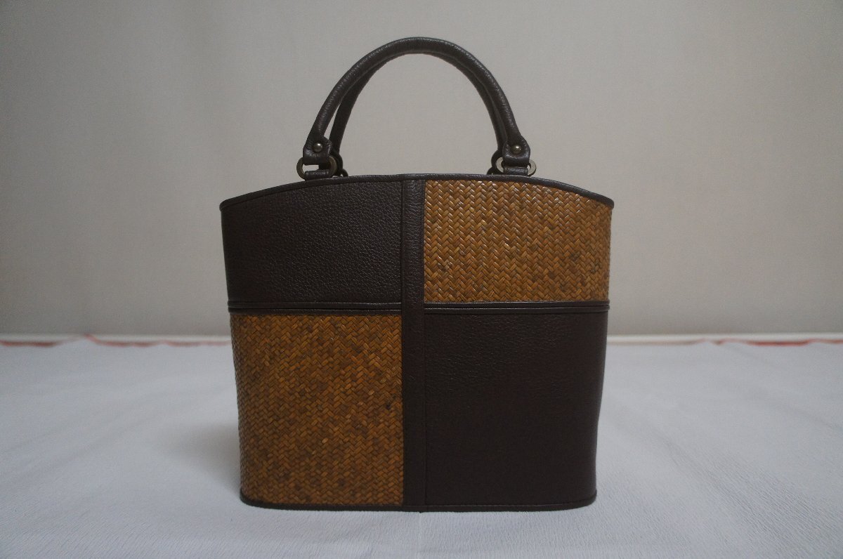 - 特選新品『和想庵』網代牛革市松模様手提げバッグ[E16401]