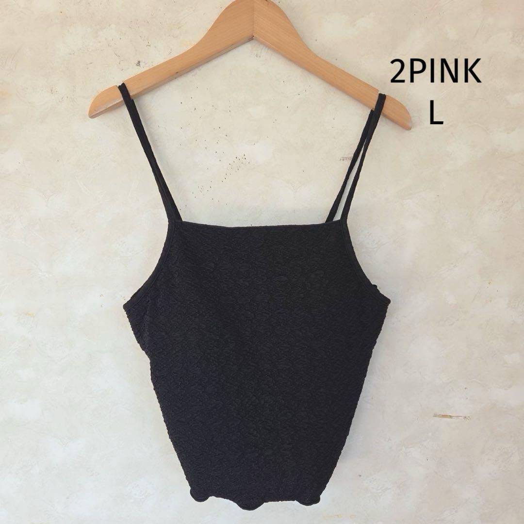 - 2PINK しまむら キャミソール L クロップド丈 ブラック 黒 パット入