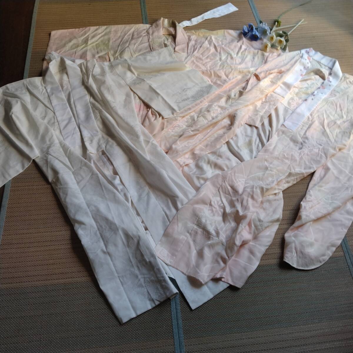 - 【長期自宅保管品】長襦袢 振袖用 白 薄ピンク 計3枚 #20