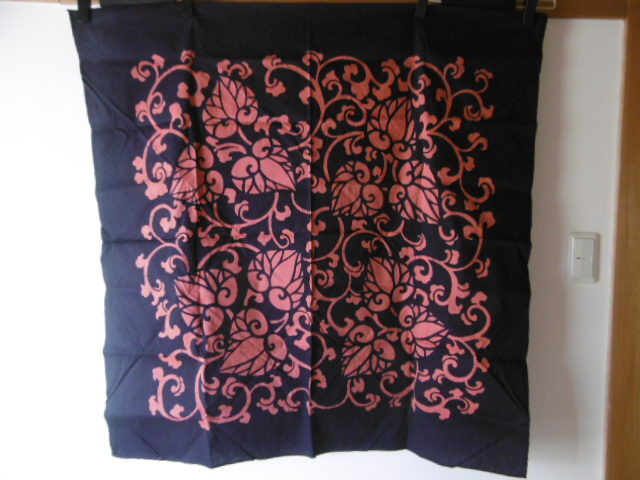 - 大判/大き目 風呂敷 特選 本ローケツ染 ろうけつ染め つたの柄/植物柄 102×102㎝ 未使用?タペストリー テーブルセンター インテリア