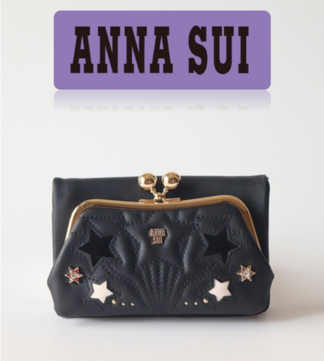 - 24,200円新品タグ付き【ANNA SUI アナスイ】ルシィ 口金 がま口二つ折り財布 黒 v7488 プレゼントにも最適