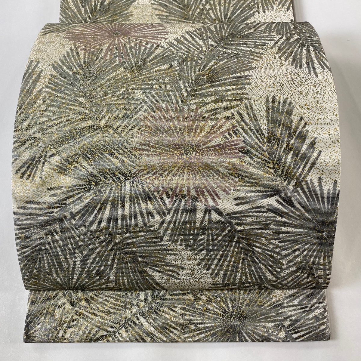 > 袋帯 美品 名品 松 麻の葉 金銀彩 ベージュ 全通 正絹 【中古】