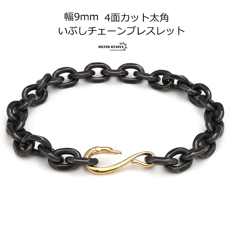 - (シルバーフック) イーグルフック 太角チェーンブレスレット 燻 太幅 9mm シルバー ゴールド フェザー ステンレス