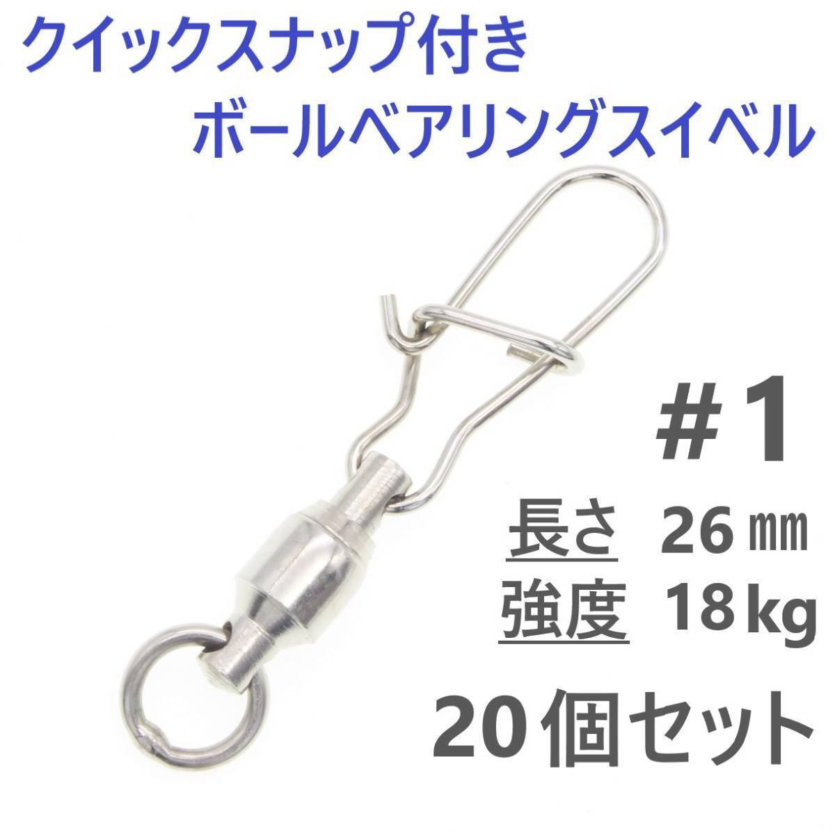 > 【送料150円】クイックスナップ付き ボールベアリング スイベル #1 20個セット 溶接リング付き ローリング サルカン ジギング等に!