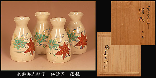 - 永楽善五郎即全■仁清写竜田川文徳利■四本揃■共箱■茶道魯山人