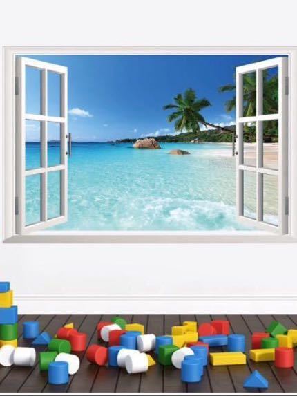 - ウォールステッカー 海 ハワイ バリ島 バリ モルディブ モルジブ 砂浜 南国 ヤシの木 青空 ブルー 青 空 ステッカー シール