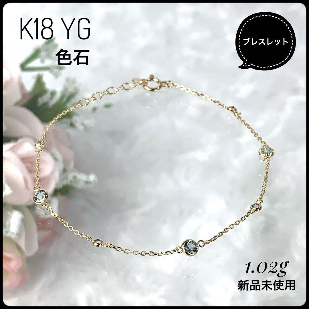 - K18 YG 透明ブルー系 色石 ブレスレット 1.02g 【新品未使用】