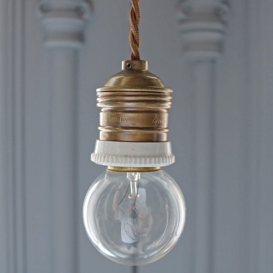 > 1950年代 フランス アンティーク 飴色 陶器 フランジ 真鍮 ソケット ランプ A* イタリア/吊り下げ 英国 北欧 照明 カフェ アトリエ ライト