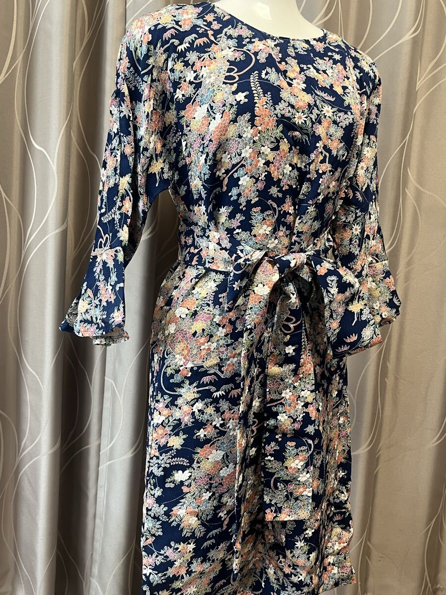 - 着物リメイク 縮緬のベルスリーブワンピース