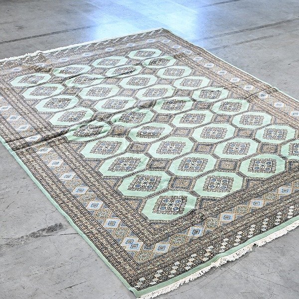 > 新品 未使用 パキスタン製 手織り ラグ ウール 絨毯 ブハラ柄 ギュル文様 ヴィンテージ風 リビング 書斎 ホテル ハンドノット マット P-17