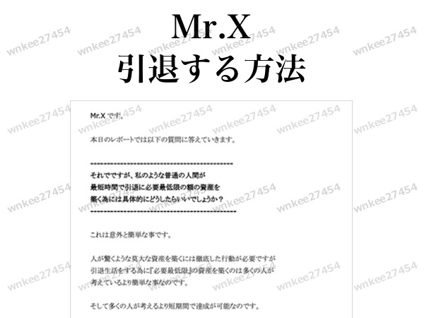 - 【Mr.X】引退する方法 非売品 PDFレポート|セミリタイア生活 FIREを実現する具体的な方法が公開!老後資金・おすすめ投資・ビジネスの話