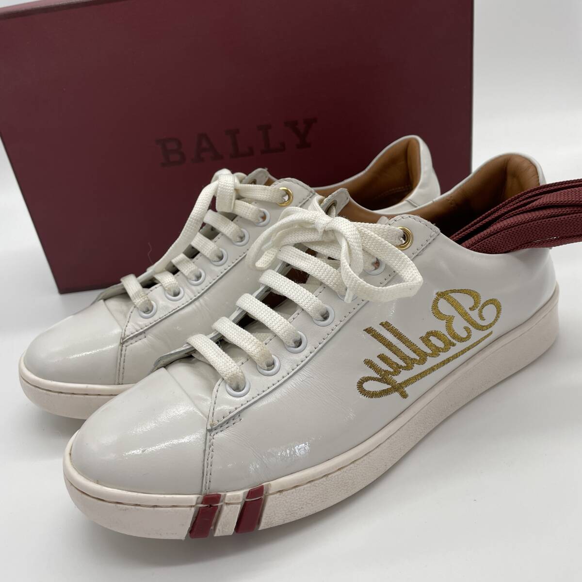 - 美品【BALLY バリー WIERA-BALLY ウィエラ バリー ホワイトレザースニーカー レディース サイドロゴ US8 26.0cm 靴 シューズ 本革】