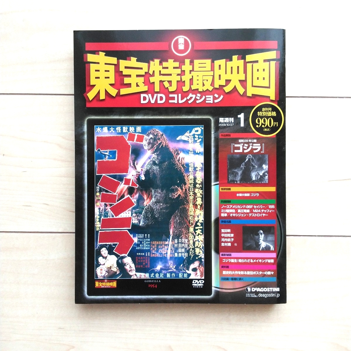 - ■『東宝特撮映画DVDコレクション1』創刊号。綴込みDVD未開封。昭和29年度作品初代「ゴジラ」。2009年10月27日。Deagostini Japan発行。