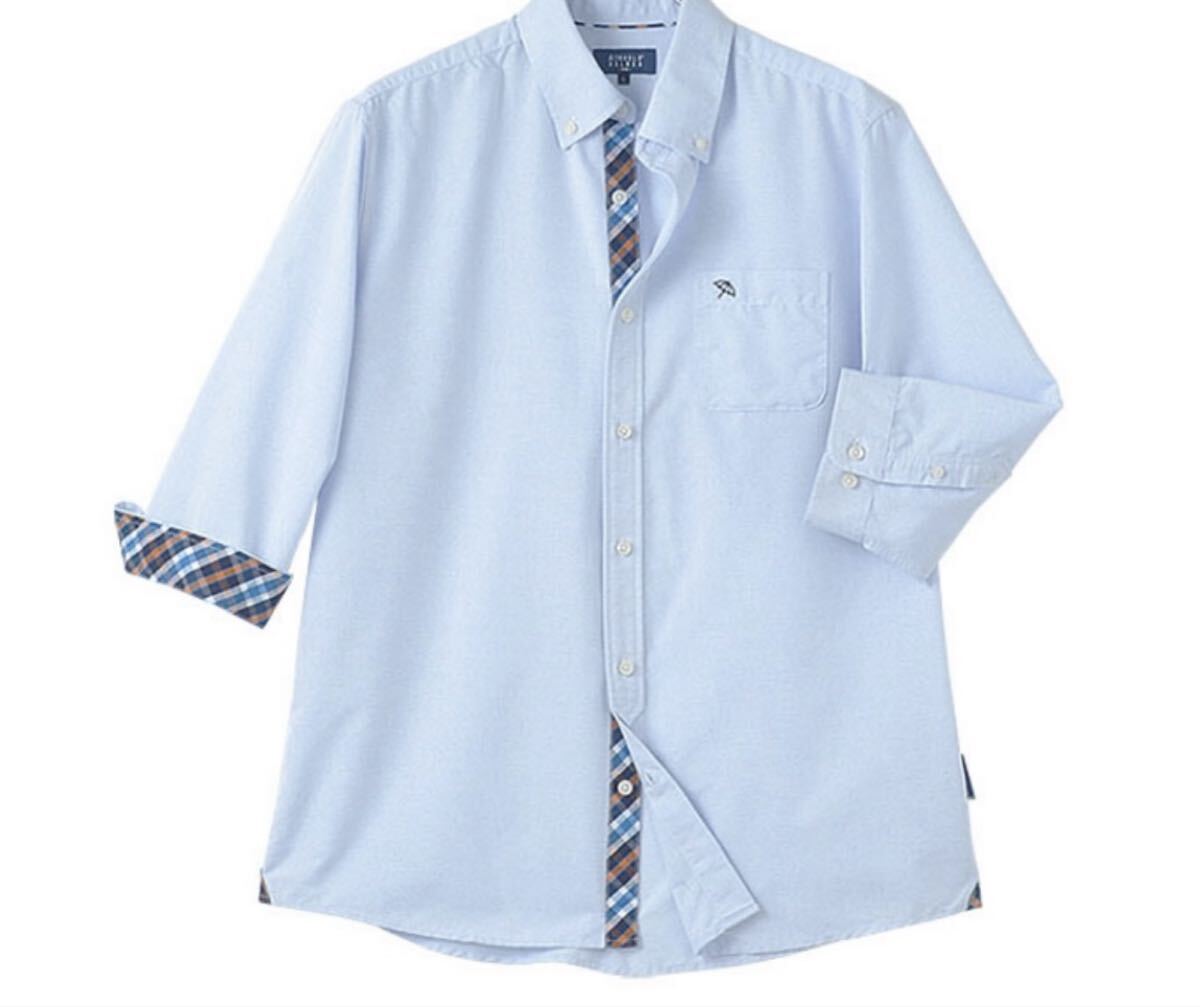 - アーノルドパーマー/7分袖/ジャガードボタンダウンシャツ/サックス