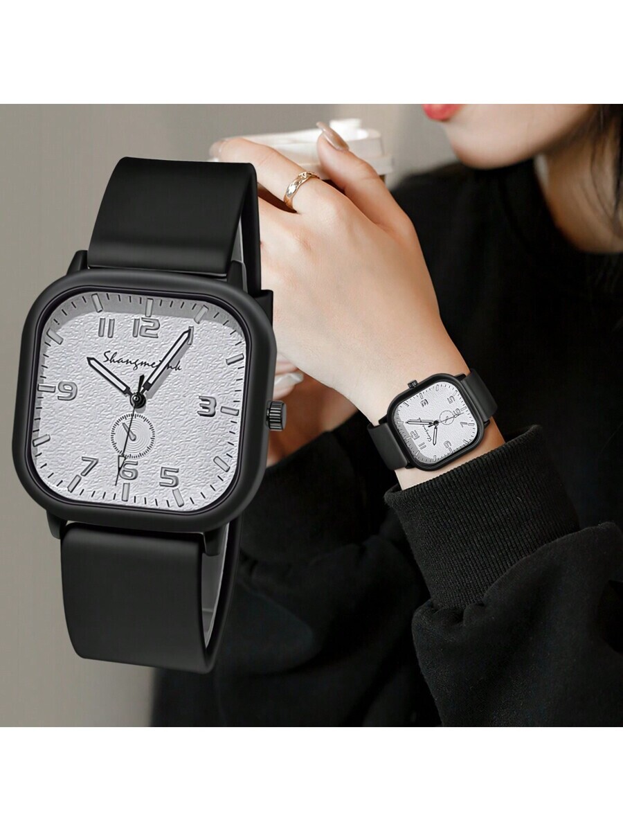 - 腕時計 レディース クォーツ 1個 ユニセックス 角型ケース シリコンバンド クォーツ腕時計、ファッショナブルなビジネス用メンズ