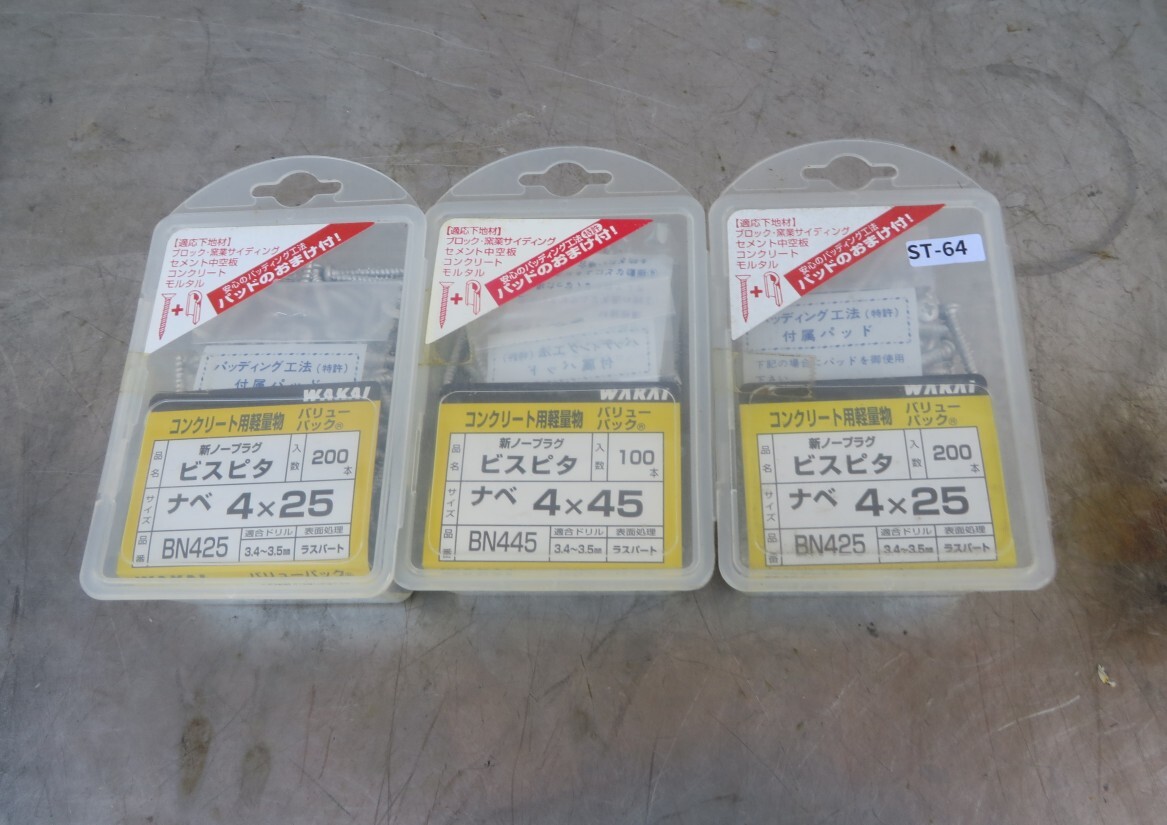 > ST-64■新品未開封!WAKAI コンクリート(軽量物)用 新ノープラグ ビスピタ BN-425×2パック+ BN-445×1パック