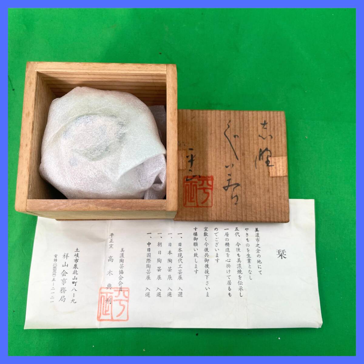 > 美濃焼 平正窯 高木典利 美濃市之倉 木箱・書面付き 祥山 希少 レア ヴィンテージ 工芸品 御猪口 湯呑 食器 新品未使用品 EL-250706017