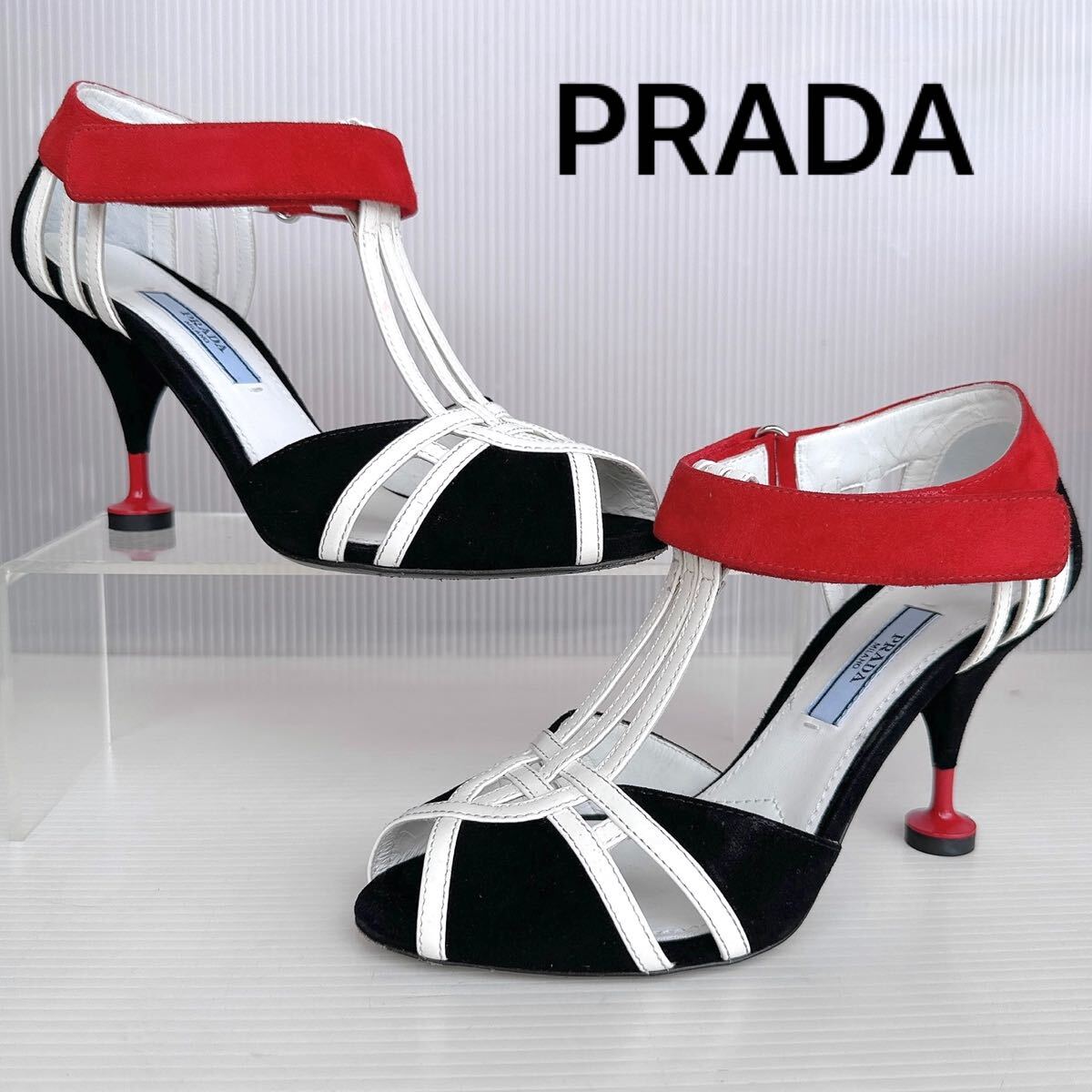 > PRADA プラダ ストラップ付き サンダル ハイヒール ピンヒール パンプス サンダル バイカラー 2回使用 レーディス 靴 35 シューズ