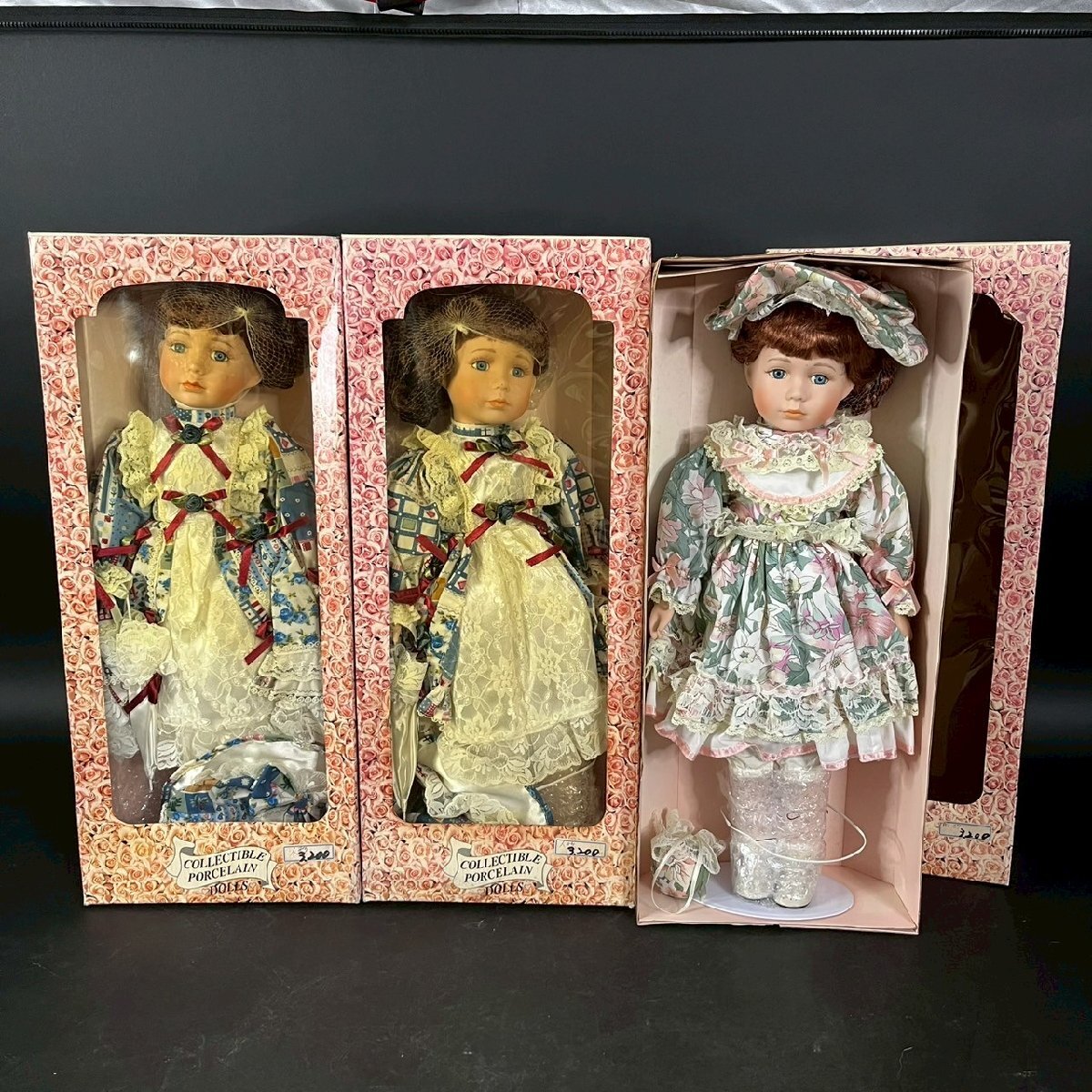 - SW0807-5‐3 まとめ 3個 COLLECTIBLE PORCELAIN DOLLS 人形 ドール 女の子 西洋 置物 インテリア 玩具 箱付 レトロ 全長52㎝ 140サイズ