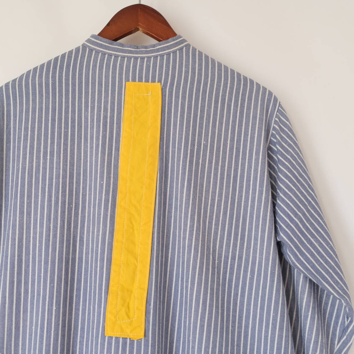 > 【 チェコ軍 ビンテージ 】コットン スタンドカラー プリズナー 長袖シャツ / 紺白系 / 39 / ヨーロッパ ミリタリー フランス ワーク 古着