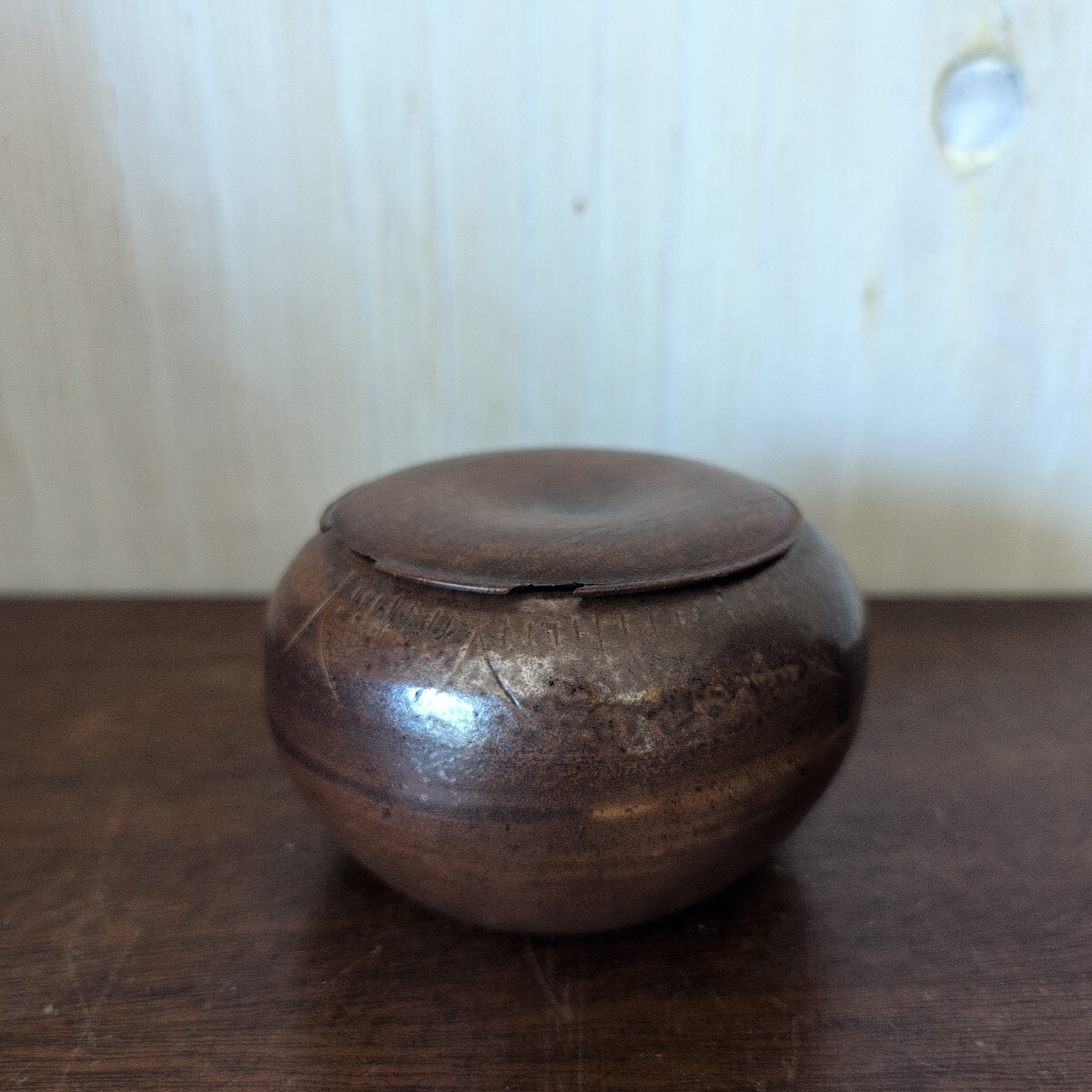 - 備前焼 花びら型 彫 茶入 明治時代 時代物 滑らかな肌