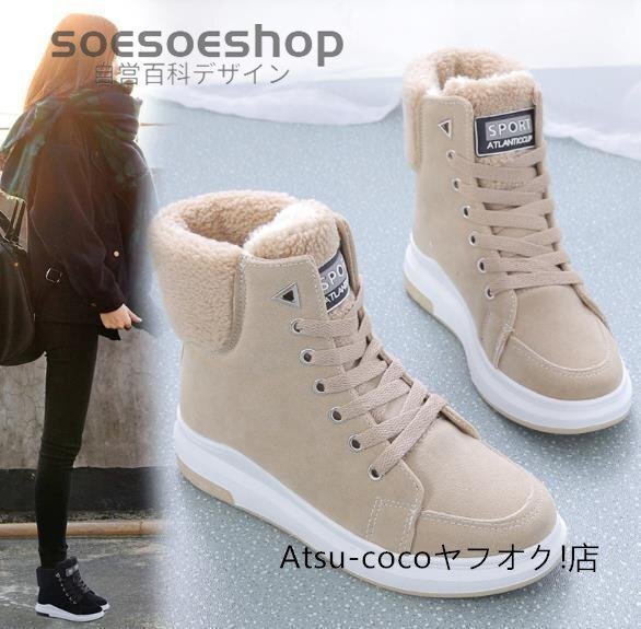 - レディース カジュアル スノーシューズ 裏起毛 スニーカー 冬靴 ハイカット 通学 厚底 韓国風