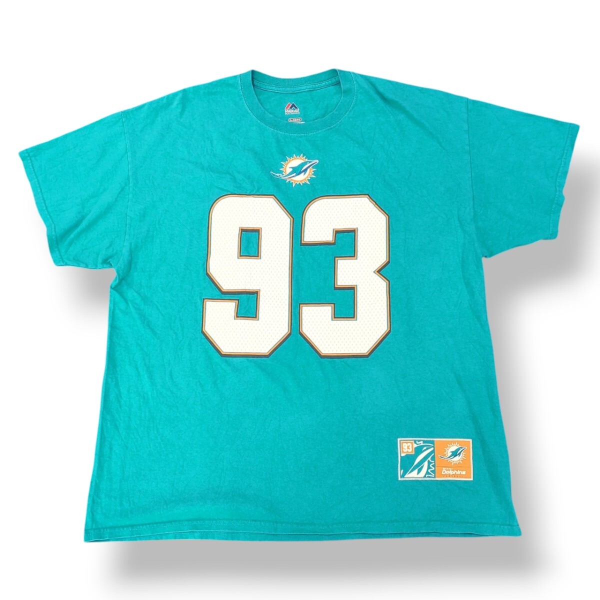 - XL Majestic NFL MIAMI Dolphinsドルフィンズ SUH 93 半袖Tシャツ ターコイズブルー ts3293