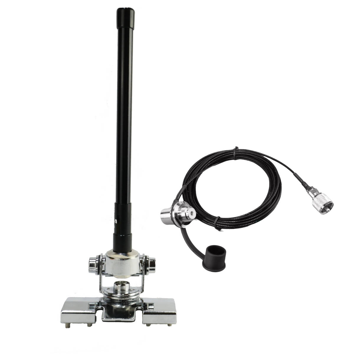 - 144/430MHz帯 約22㎝ デュアルバンドアンテナ ハッチバック/トランク基台(シルバー) RG316(1.5D-2V相当)MJL-MP接栓付 同軸ケーブル5m