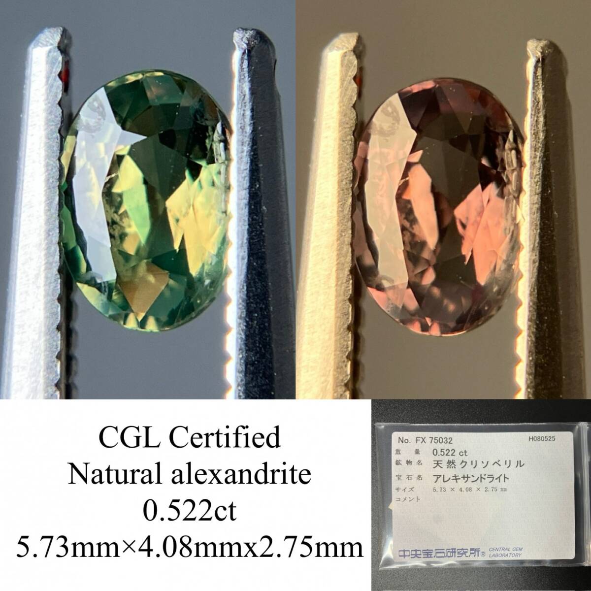 - アレキサンドライト 天然 0.522ct 中央宝石ソーティング付き 5.73×4.08×2.75 ルース( 裸石 ) 6324YY