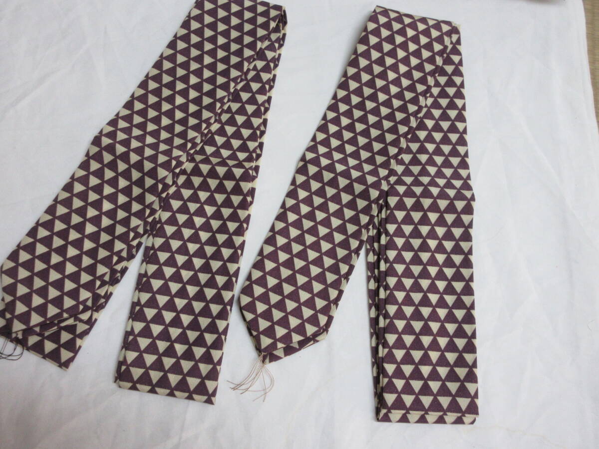 - 〇正絹 腰紐 襷(たすき) 厄除け柄 鱗柄 紫&クリーム 225×5.5cm 2本セット 09721