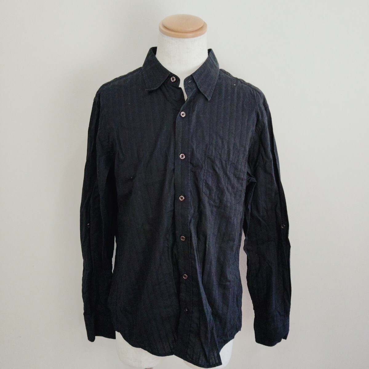 > 0822/LL/LOUISCHAVLON メンズ 長袖シャツ ブラウス ストライプ柄 ロールアップ 黒